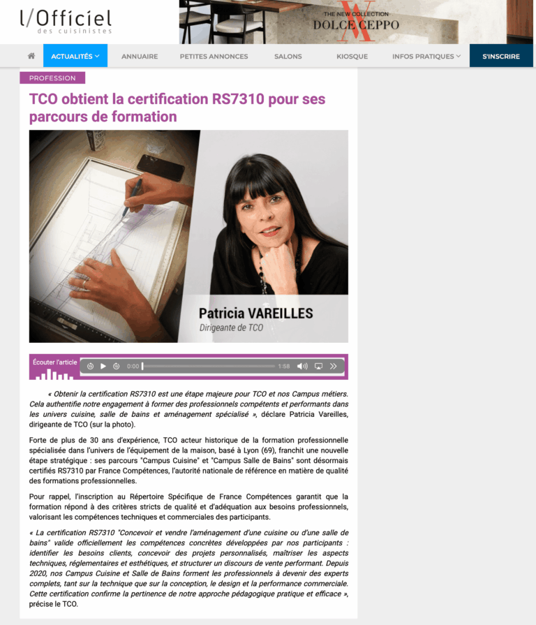 Créé en 1992, TCO bénéficie d’une compétence, d’une expertise et d’une notoriété, dans le domaine de la stratégie commerciale, de la formation des métiers de l’habitat, de l’ameublement, de la cuisine et de la salle de bain.